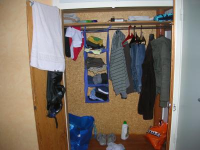 Das ist mein Schrank, wobei ich das Hängeding bei IKEA gekauft habe. Mehr gibt´s in meinem Zimmer nicht zu sehen.